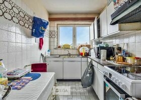 •Keuken met kasten, dubbele spoelbak en aansluiting voor wasmachine