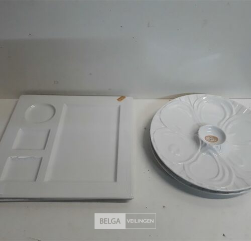4 x Serveerschaal met verdeling 2 x rond + 2 x vierkant