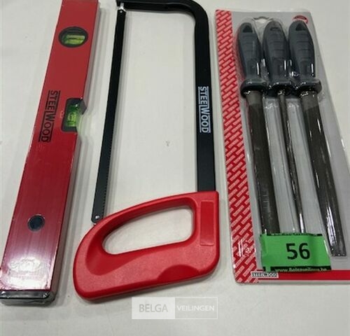 1 x vijlset 3 delig - 1 x ijzezaag - 1x waterpas