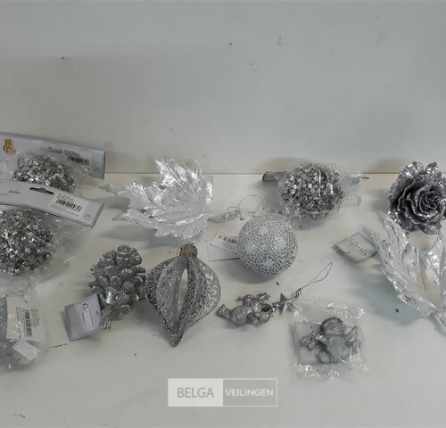 21 x Kerstbal pvc zilver met glitters 6 cm