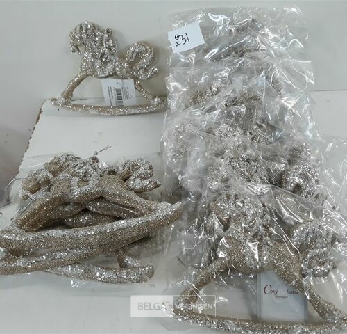 15 x Hangdeco schommelpaard goud glitter 15x11 cm