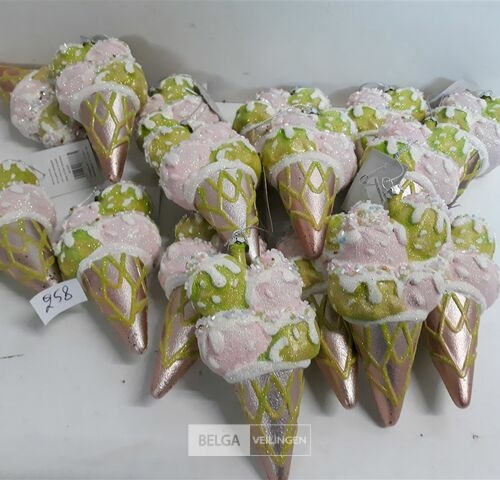 17 x Hangdeco ijsje roze/groen pvc 15 cm