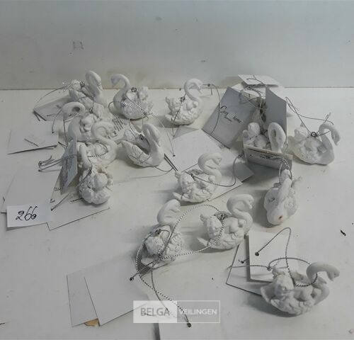 16 x Hangdeco zwaan met engel op de rug 5 cm