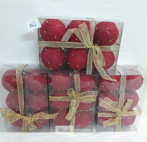4 x Kerstballen sisal rood 7 cm 6 stuks
