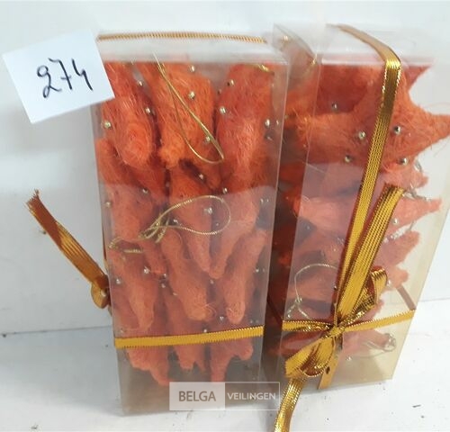 2 x Kerstster sisal oranje 8 cm 12 stuks