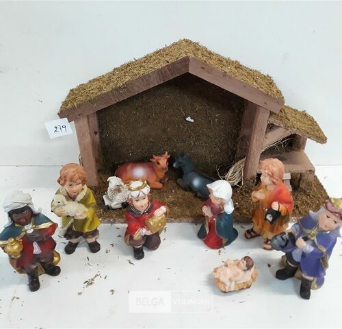 1 x Kerststal 45x15x26 cm + 10 figuurtjes