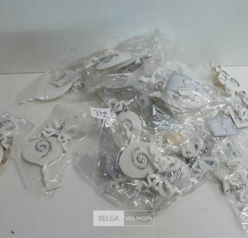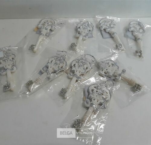 9 x Hangdeco sleutel 12 cm zilver/wit