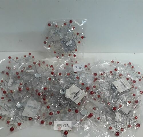15 x Hangdeco sneeuwvlok met rode bollen 15 cm