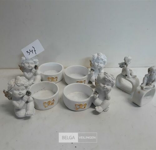 4 x Engel als T-lichthouder + 2 x Servettenring Engel