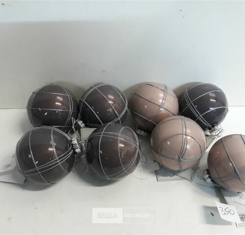 8 x Kerstbal 8 cm glas met lijnen 2 assorti