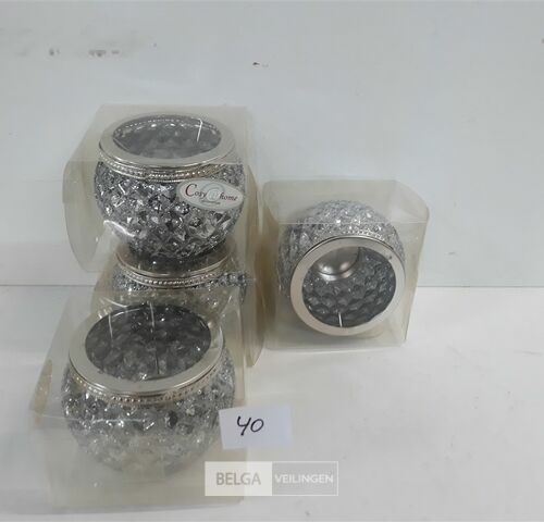 4 x T-licht houder glas zilver glitter 9 x 7 cm