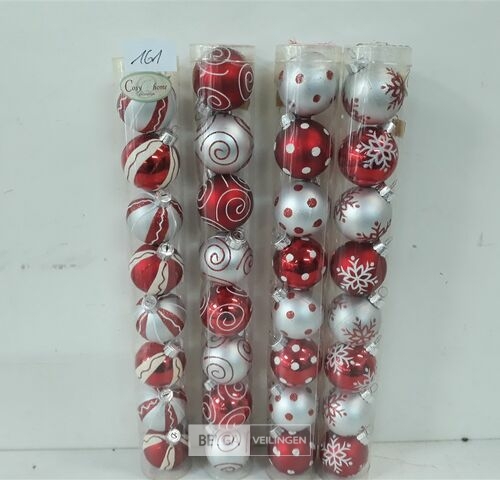 4 x Kerstballen pvc 8 stuks rood/zilver