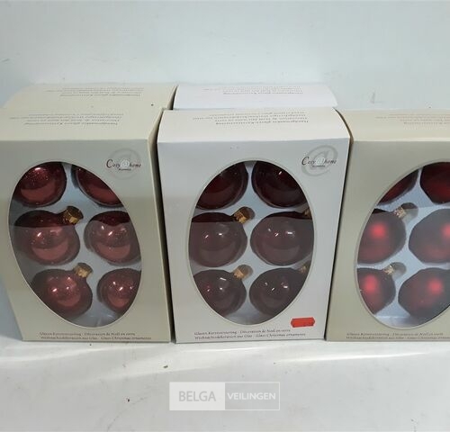5 x Kerstballen glas 6 stuks rood 3 assorti