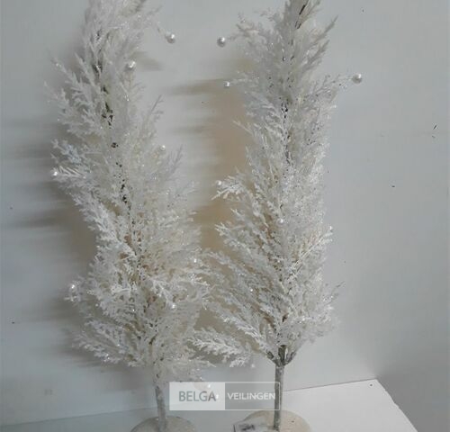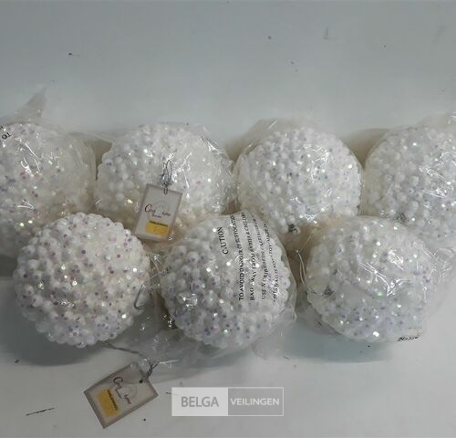 7 x Kerstbal pvc wit met roze/paarse dotjes