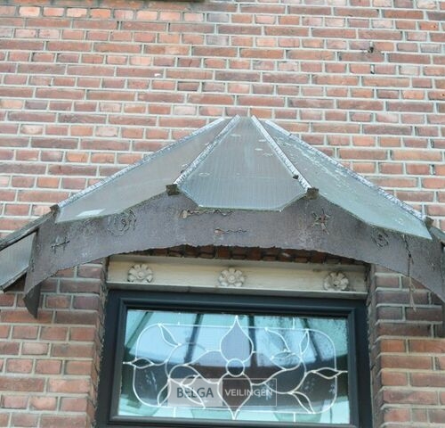 1 inkom afdakje gemaakt van verroest metaal en heeft een gebogen structuur