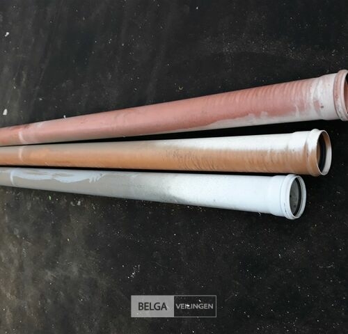 2 x Dakgoot pvc licht grijs 4 M 80mm + buis 50mm 4M