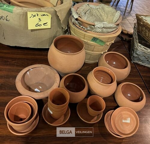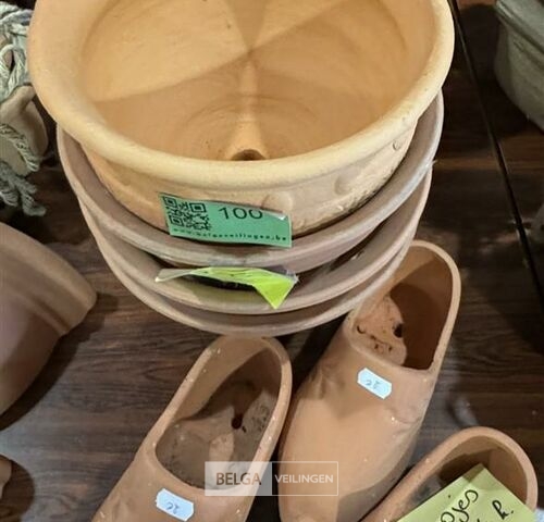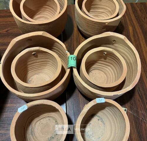 Tuin & terras 2 dozen terracotta wandbloempotten + 4 ronde plastieken bloempotten + 2 terracotta hangbloempotten 2025533-112