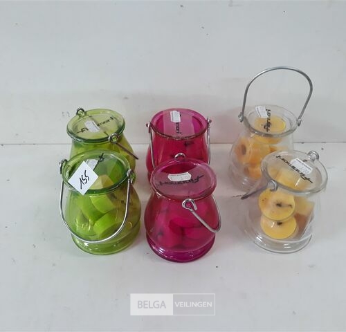 6 x T-lichtjes 5 stuks in glazen potje mix kleuren