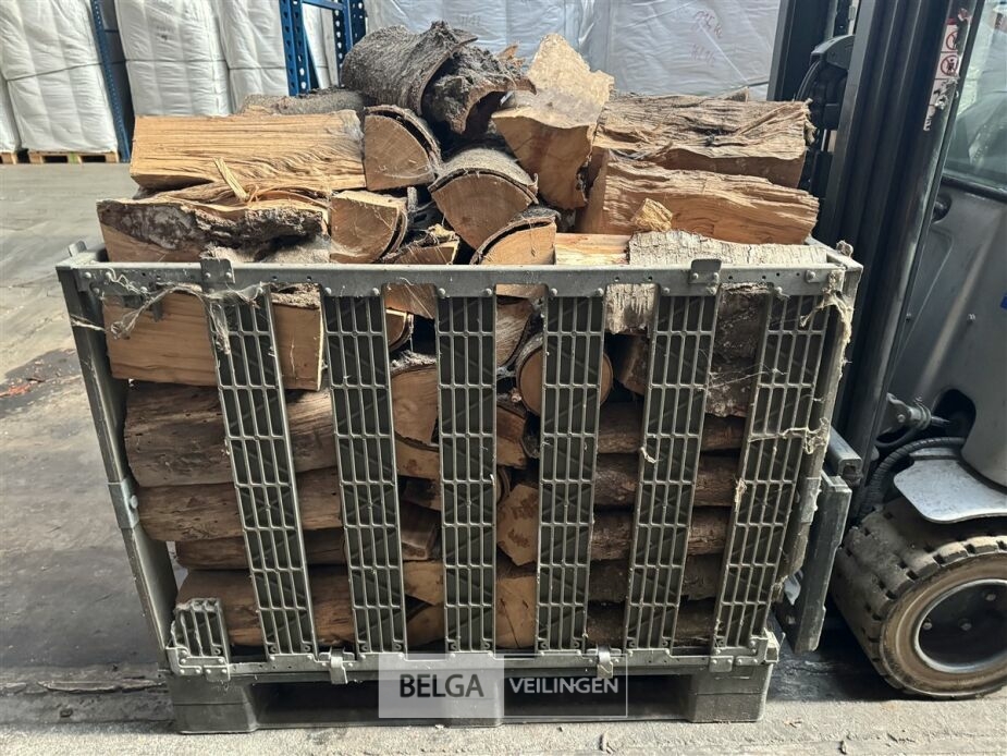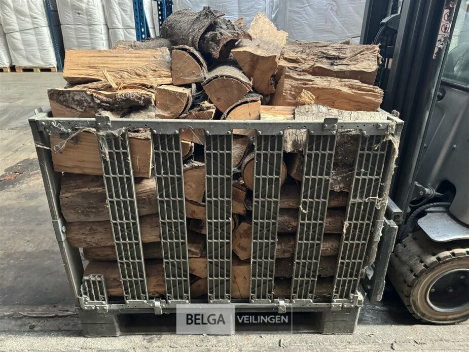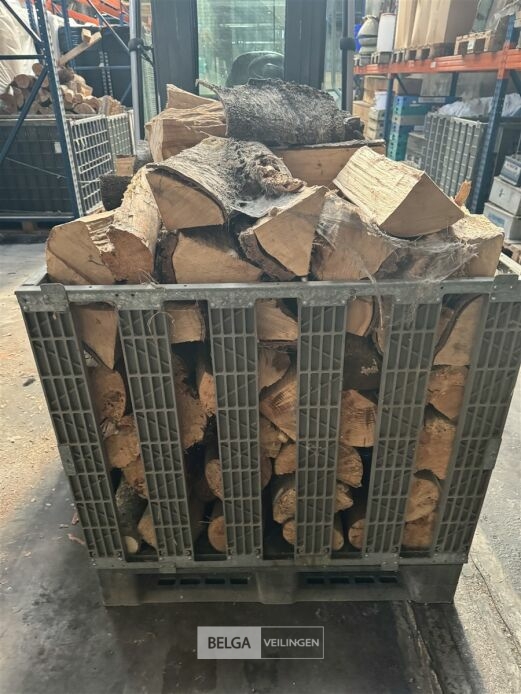 1 bak gedroogd brandhout ± 120x100x85 of 0,80x120x85- palet en bak inbegrepen. De bakken kunnen verschillen van inhoud - soort hout: den, berk of andere soorten volgens afgifte Belgaveilingen.