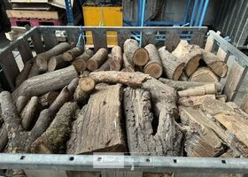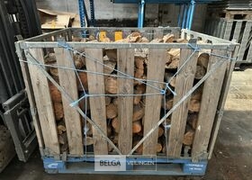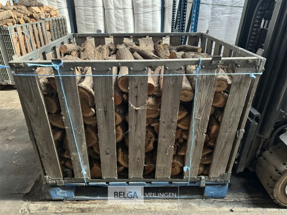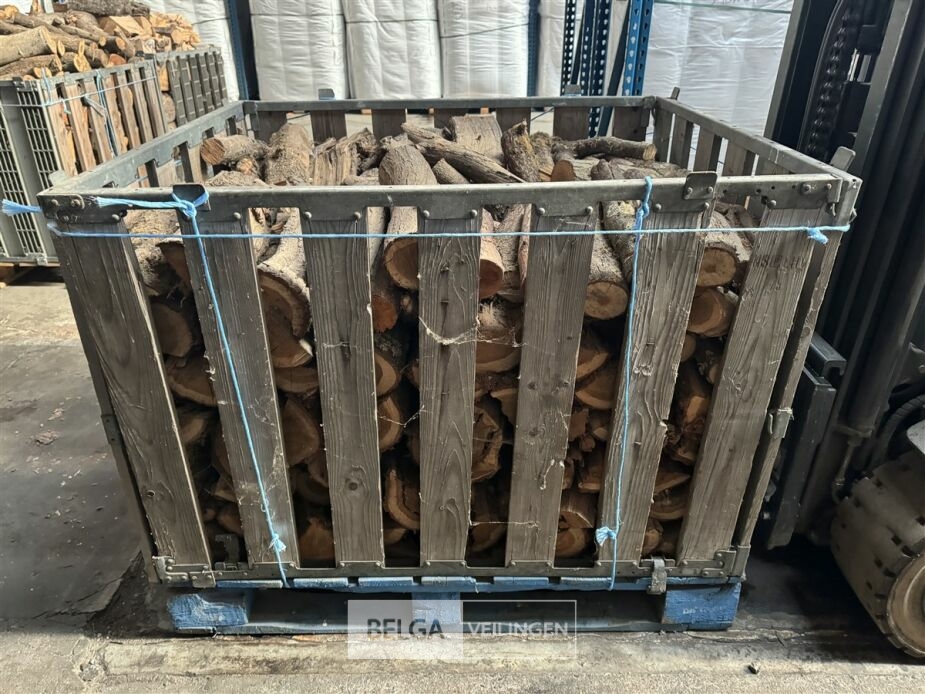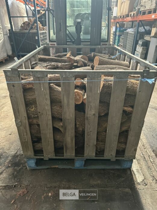 1 bak gedroogd brandhout ± 120x100x85 of 0,80x120x85- palet en bak inbegrepen. De bakken kunnen verschillen van inhoud - soort hout: den, berk of andere soorten volgens afgifte Belgaveilingen.