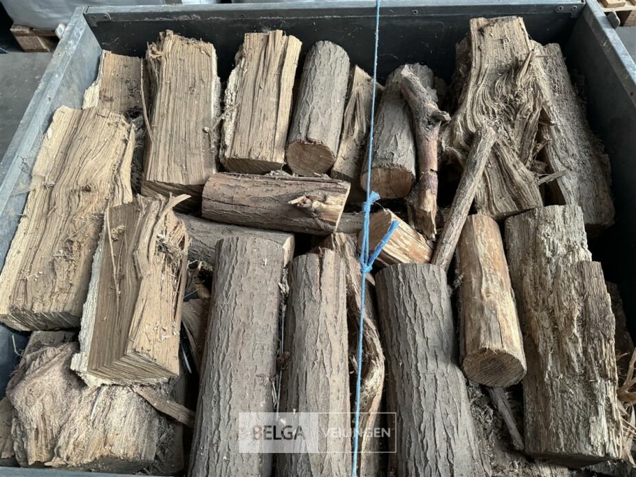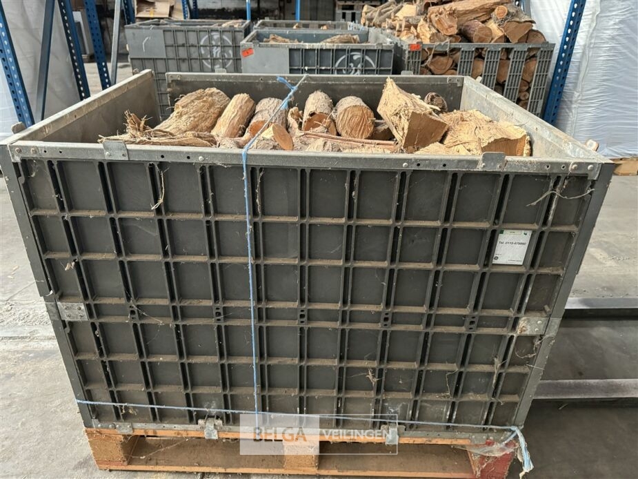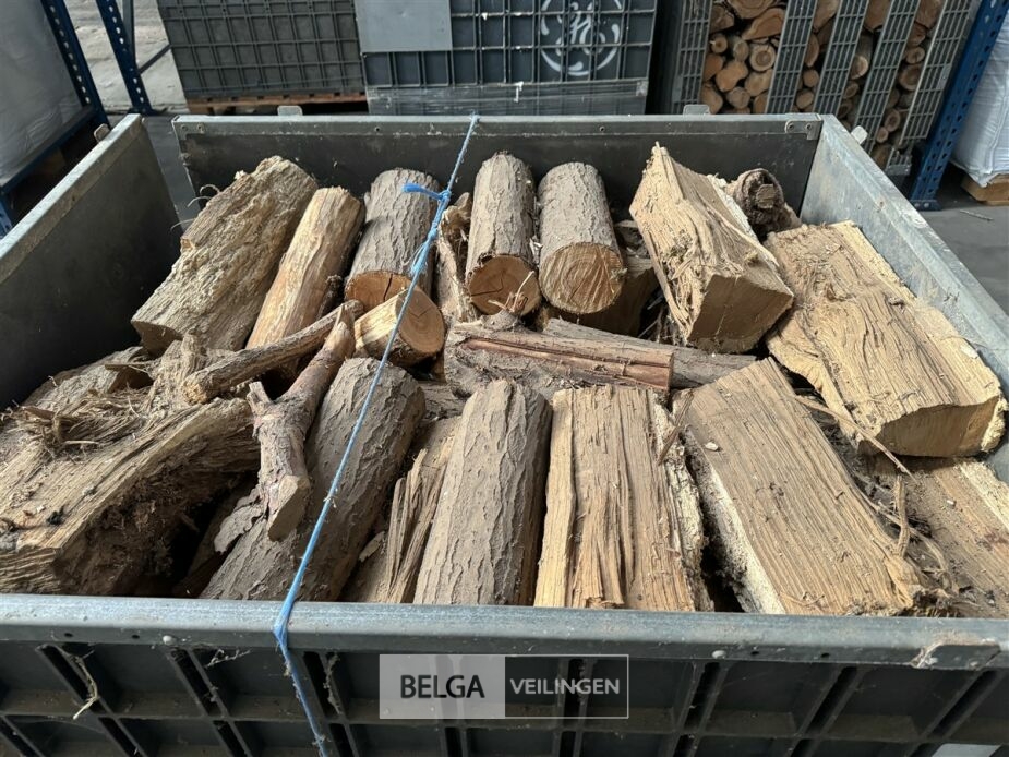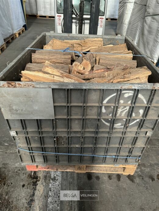 1 bak gedroogd brandhout ± 120x100x85 of 0,80x120x85- palet en bak inbegrepen. De bakken kunnen verschillen van inhoud - soort hout: den, berk of andere soorten volgens afgifte Belgaveilingen.