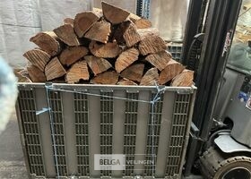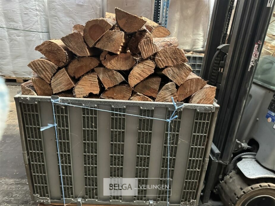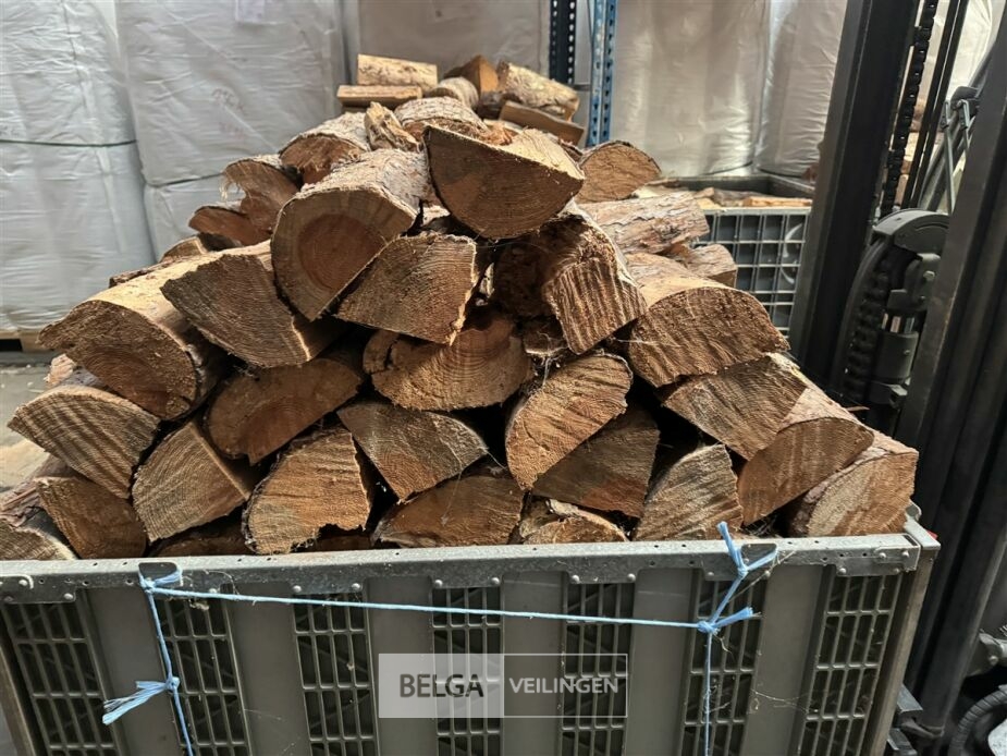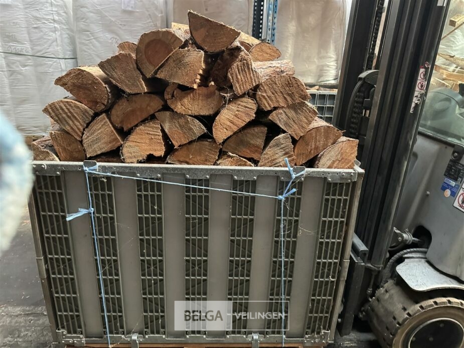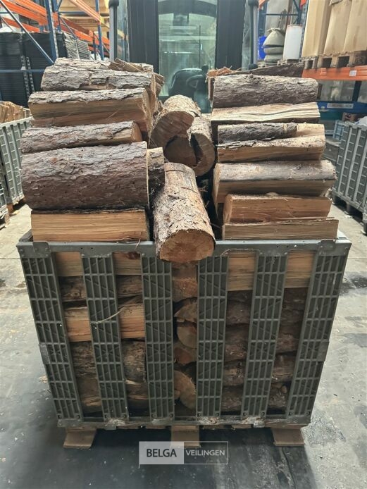 1 bak gedroogd brandhout ± 120x100x85 of 0,80x120x85- palet en bak inbegrepen. De bakken kunnen verschillen van inhoud - soort hout: den, berk of andere soorten volgens afgifte Belgaveilingen.