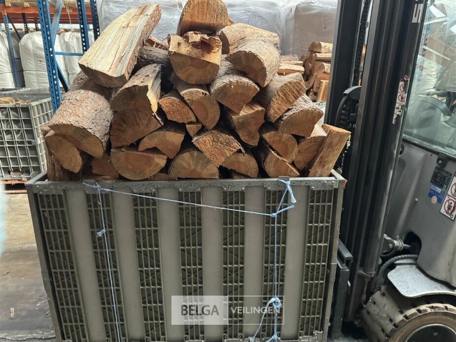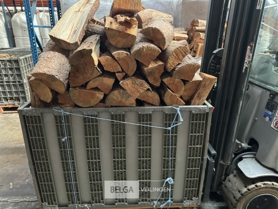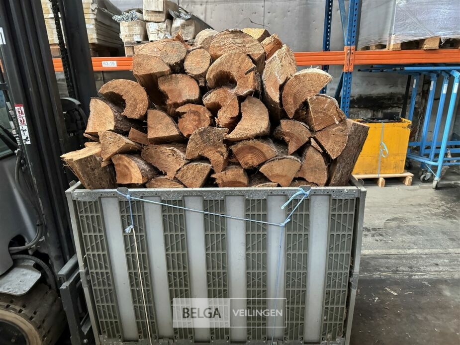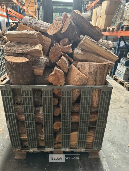 1 bak gedroogd brandhout ± 120x100x85 of 0,80x120x85- palet en bak inbegrepen. De bakken kunnen verschillen van inhoud - soort hout: den, berk of andere soorten volgens afgifte Belgaveilingen.