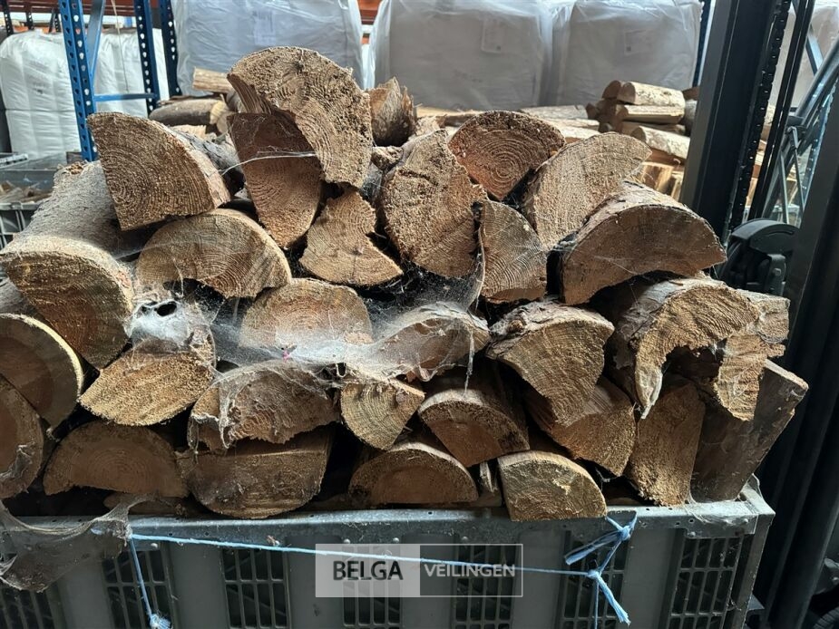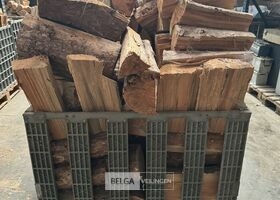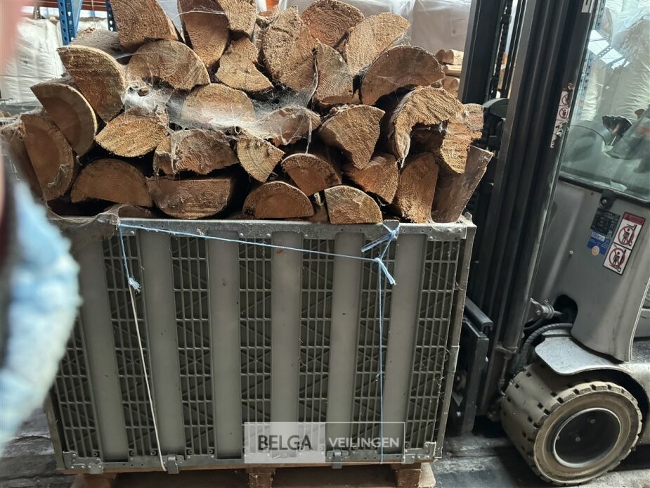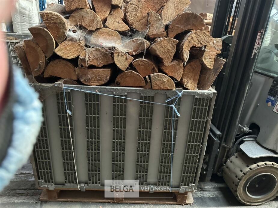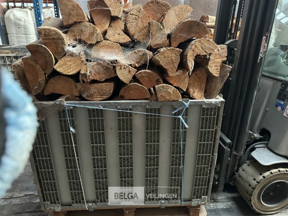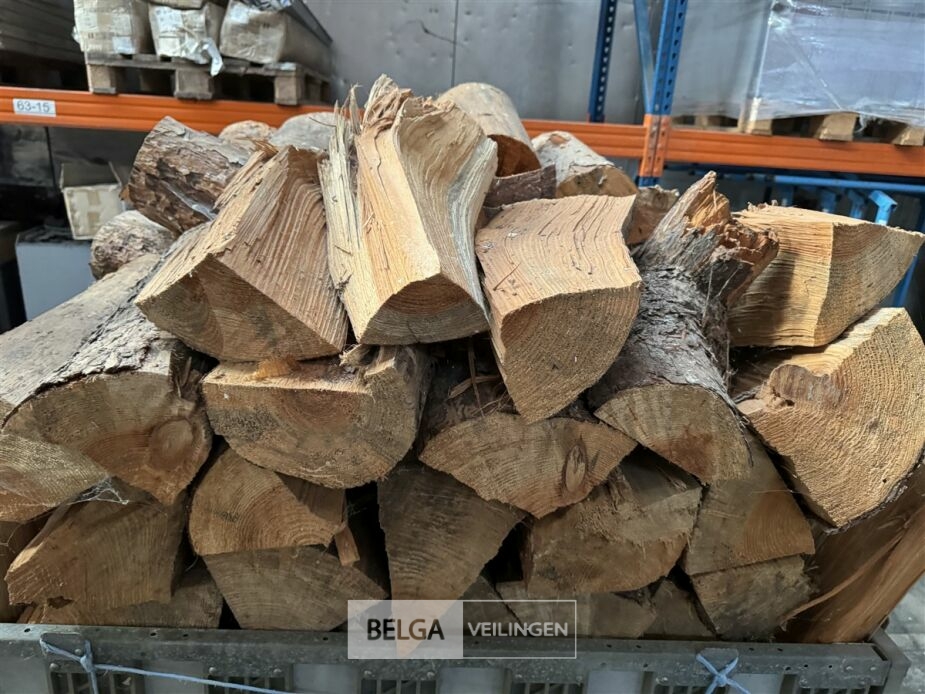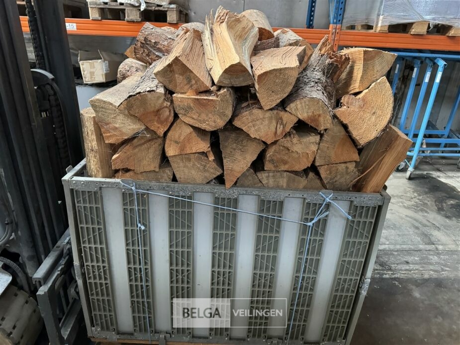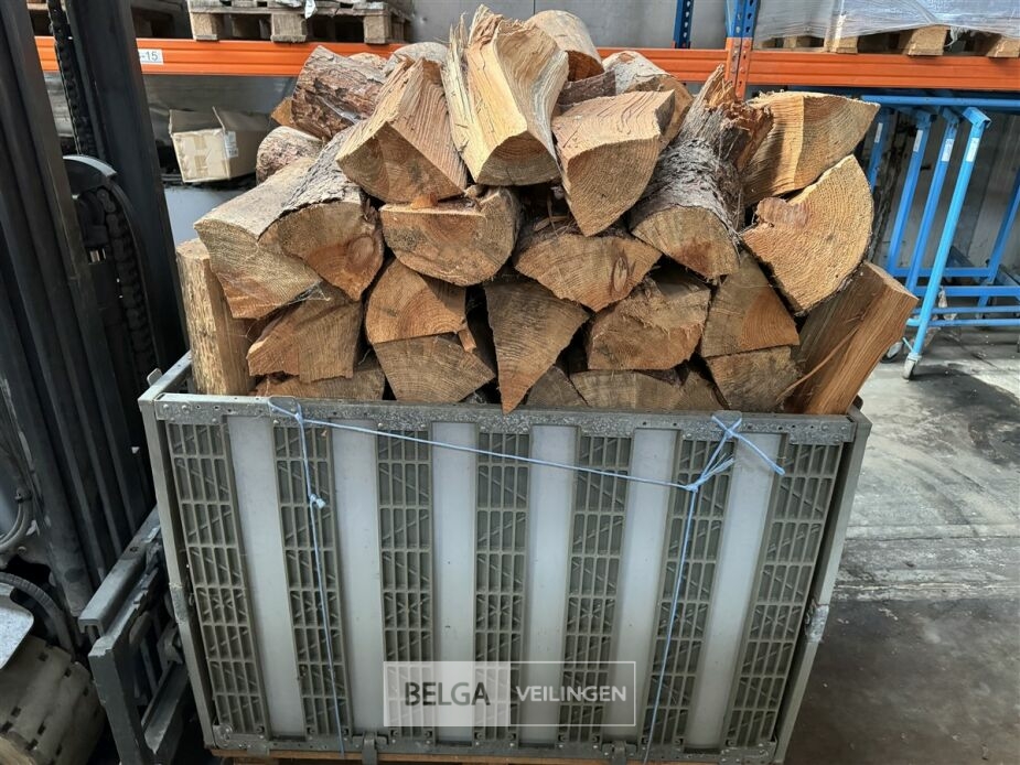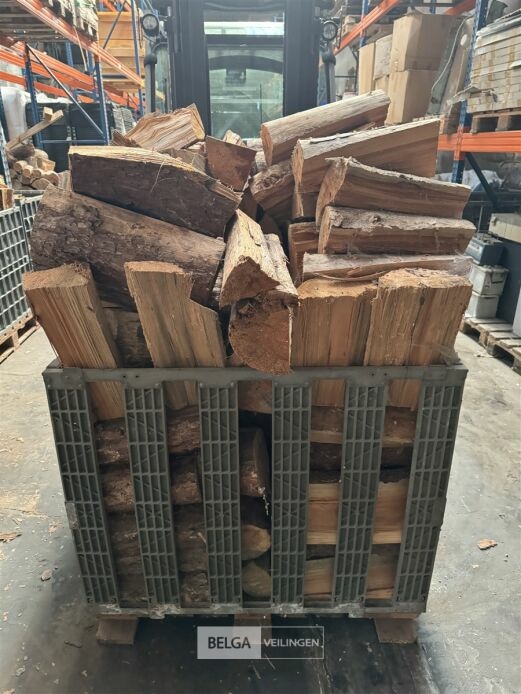 1 bak gedroogd brandhout ± 120x100x85 of 0,80x120x85- palet en bak inbegrepen. De bakken kunnen verschillen van inhoud - soort hout: den, berk of andere soorten volgens afgifte Belgaveilingen.