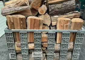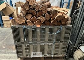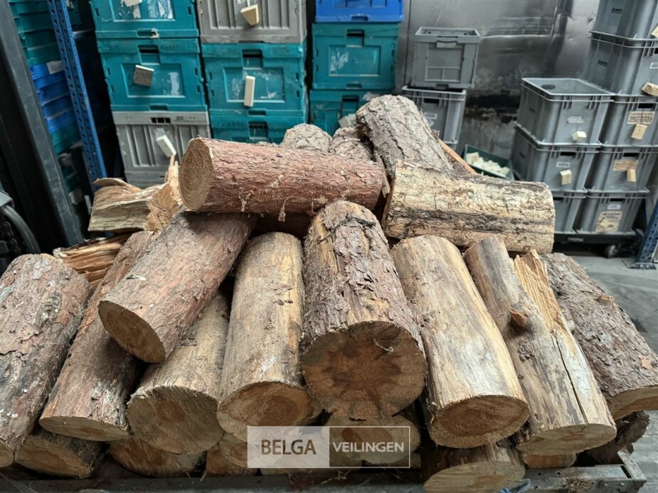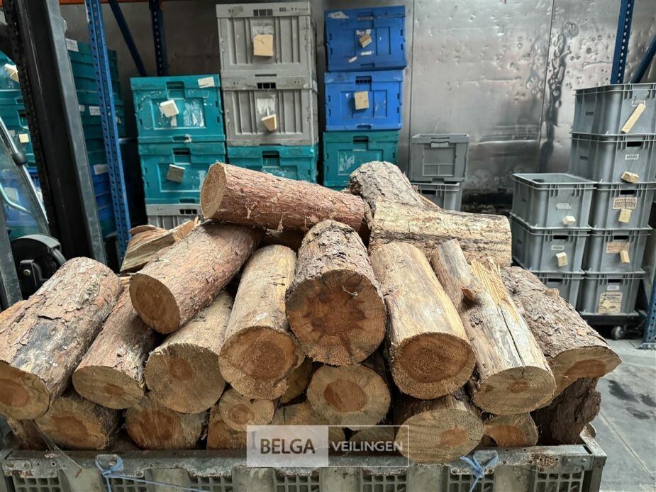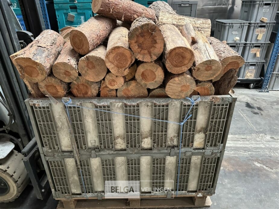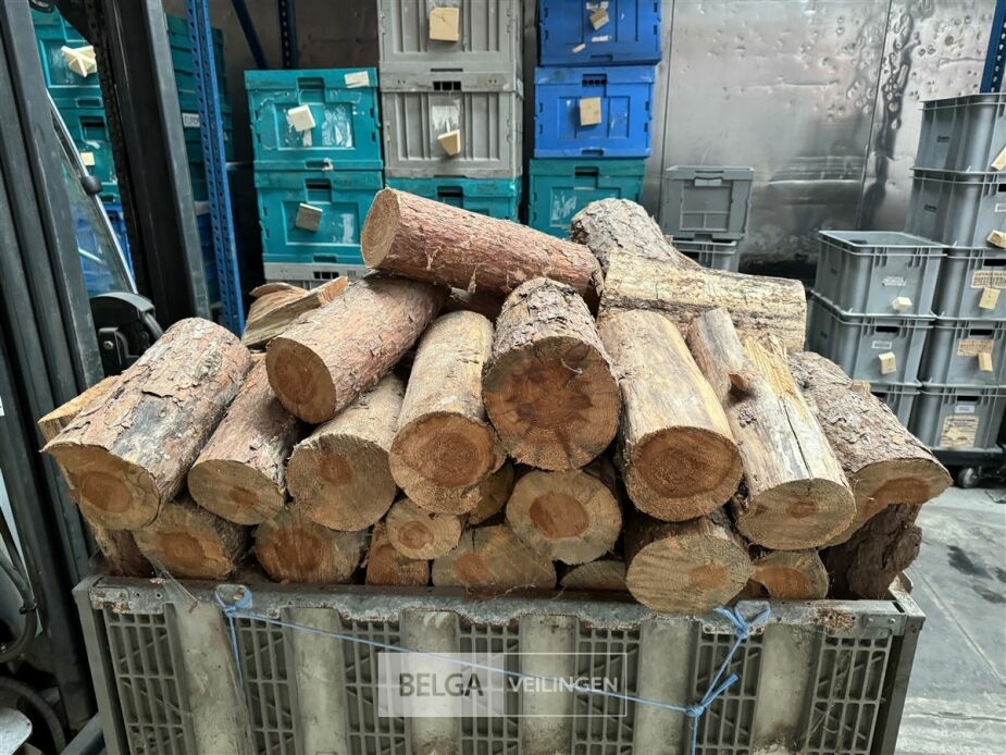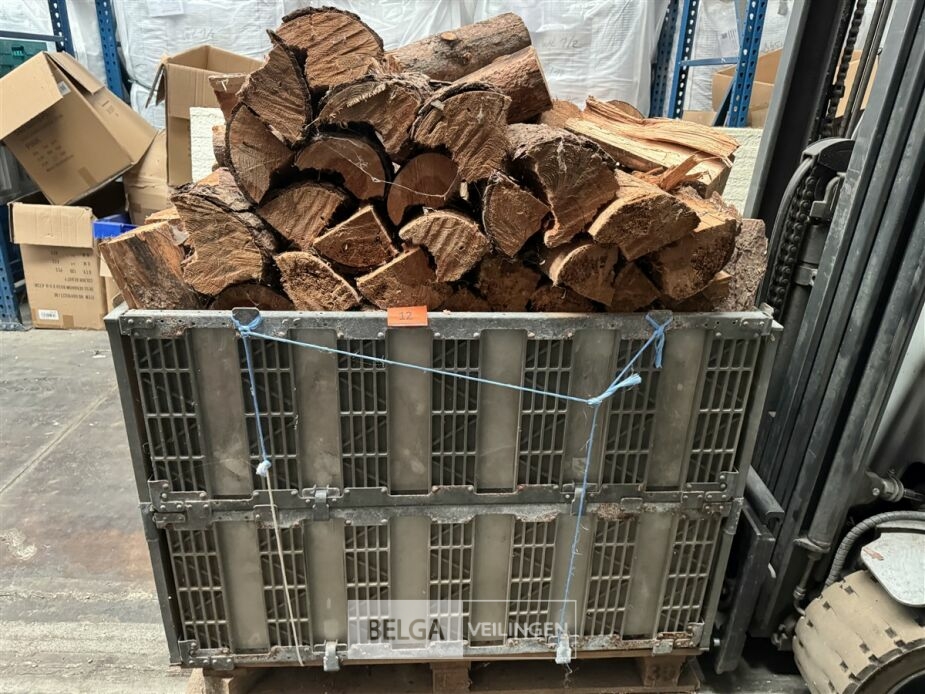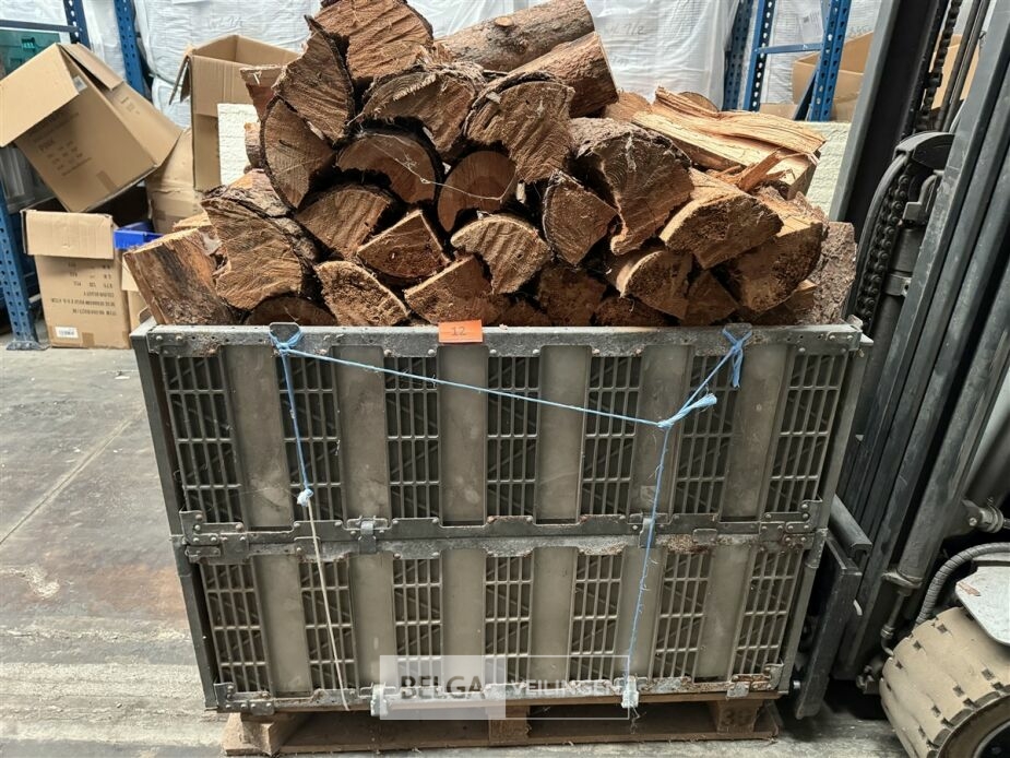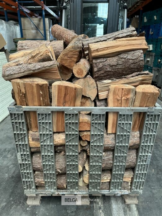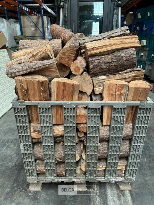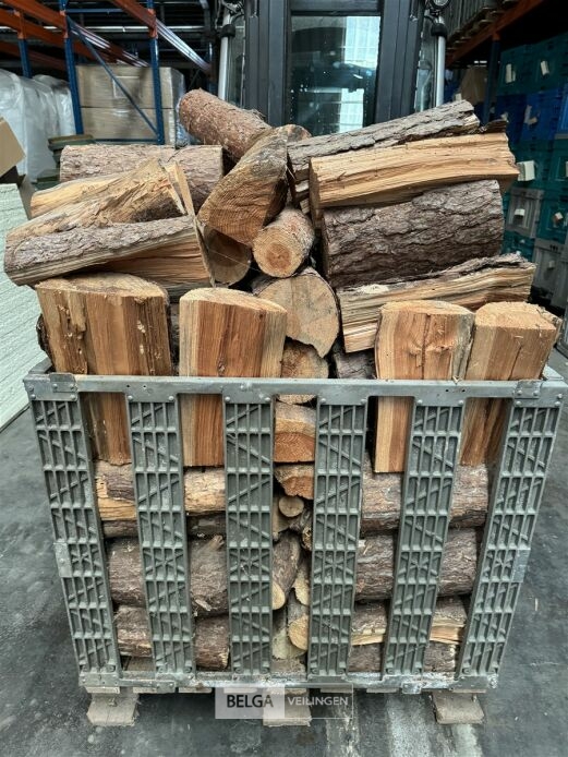 1 bak gedroogd brandhout ± 120x100x85 of 0,80x120x85- palet en bak inbegrepen. De bakken kunnen verschillen van inhoud - soort hout: den, berk of andere soorten volgens afgifte Belgaveilingen.