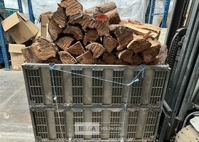 1 bak gedroogd brandhout ± 120x100x85 of 0,80x120x85- palet en bak inbegrepen. De bakken kunnen verschillen van inhoud - soort hout: den, berk of andere soorten volgens afgifte Belgaveilingen.
