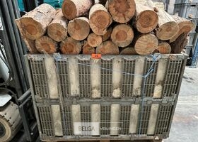 1 bak gedroogd brandhout ± 120x100x85 of 0,80x120x85- palet en bak inbegrepen. De bakken kunnen verschillen van inhoud - soort hout: den, berk of andere soorten volgens afgifte Belgaveilingen.