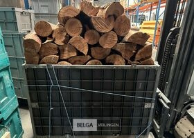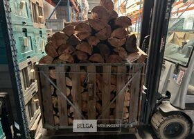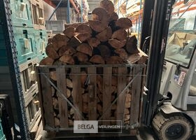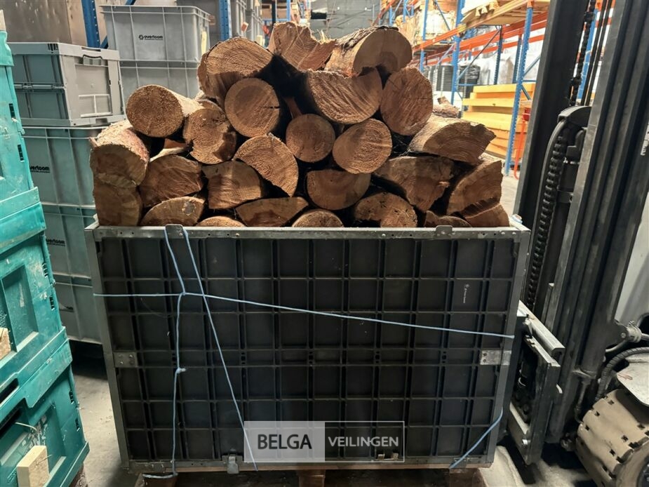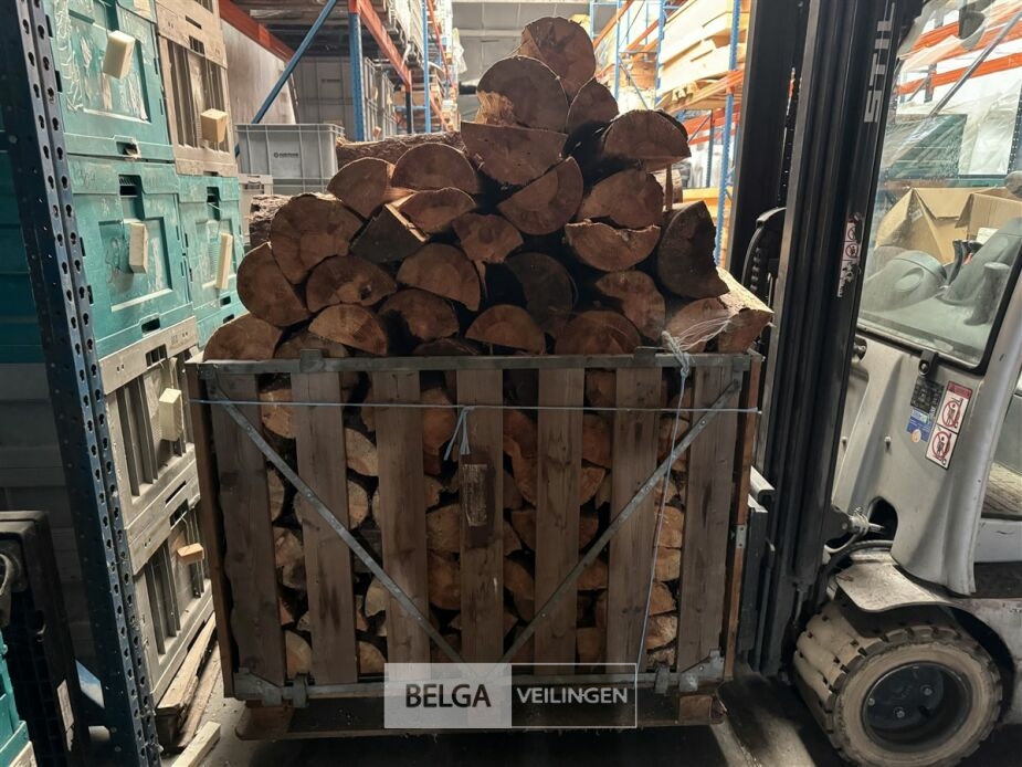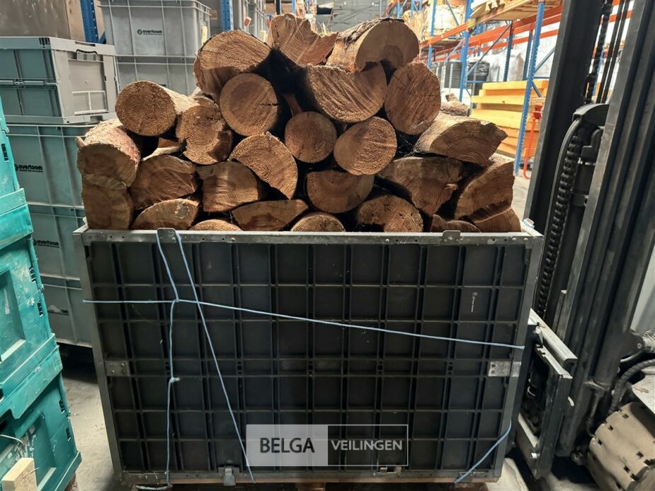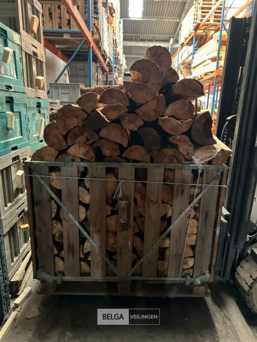 1 bak gedroogd brandhout ± 120x100x85 of 0,80x120x85- palet en bak inbegrepen. De bakken kunnen verschillen van inhoud - soort hout: den, berk of andere soorten volgens afgifte Belgaveilingen.