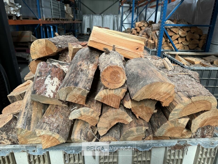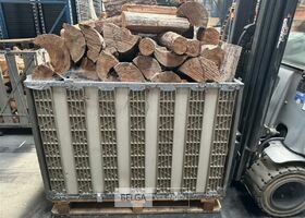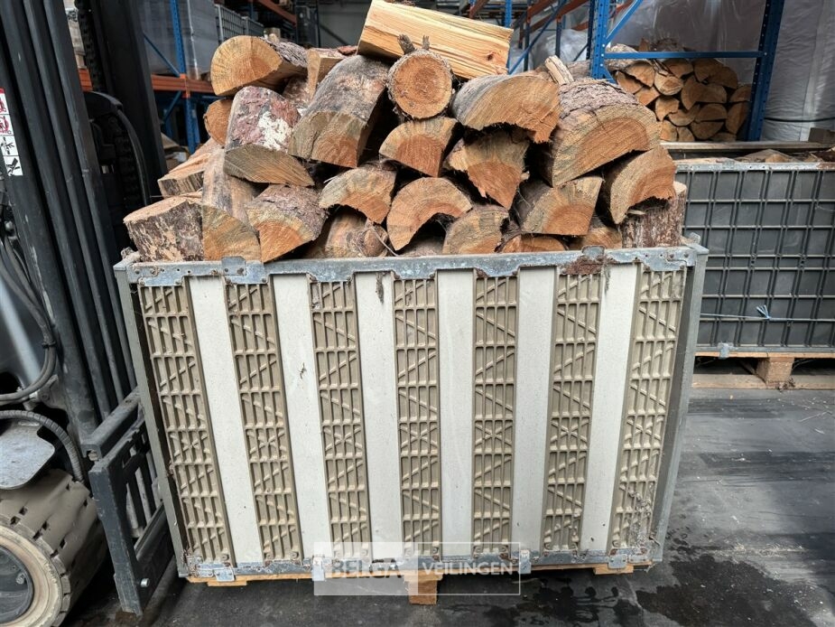 1 bak gedroogd brandhout ± 120x100x85 of 0,80x120x85- palet en bak inbegrepen. De bakken kunnen verschillen van inhoud - soort hout: den, berk of andere soorten volgens afgifte Belgaveilingen.