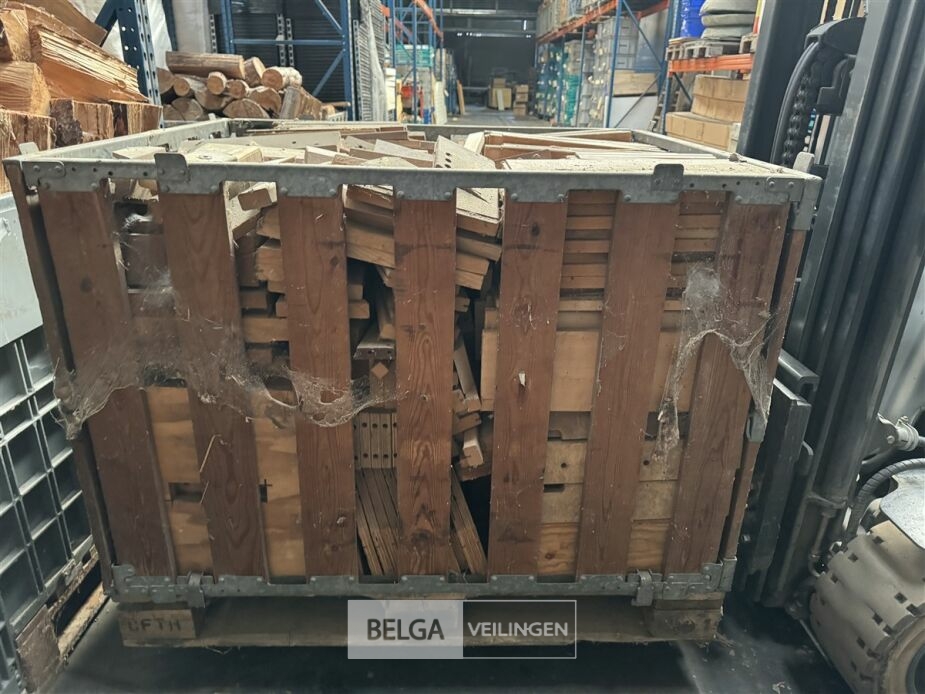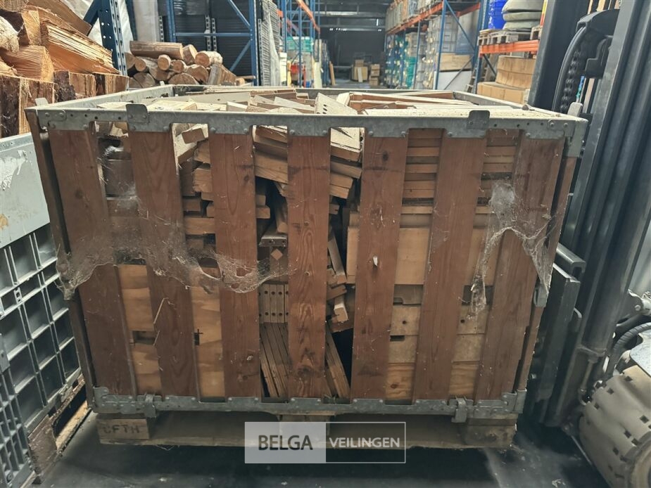1 bak gedroogd brandhout ± 120x100x85 of 0,80x120x85- palet en bak inbegrepen. De bakken kunnen verschillen van inhoud - soort hout: den, berk of andere soorten volgens afgifte Belgaveilingen.
