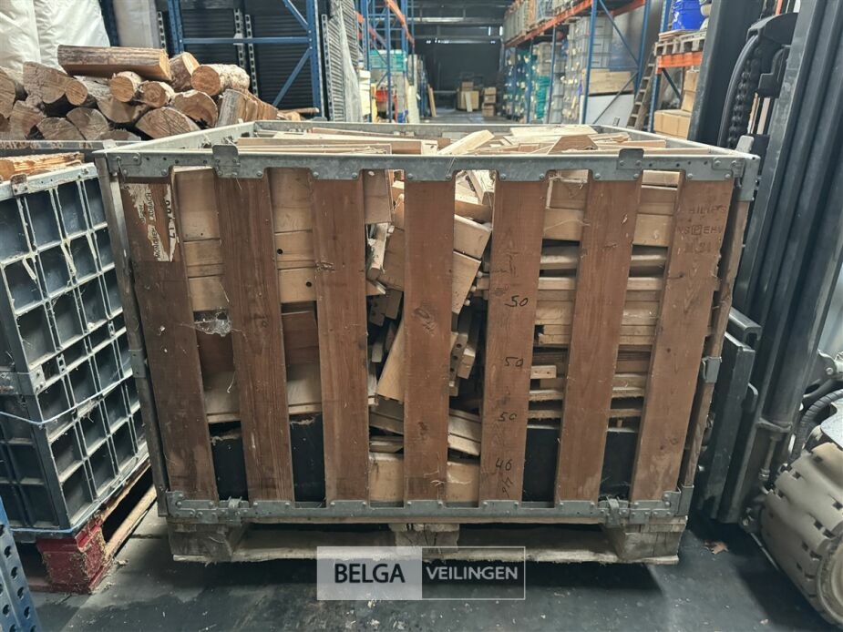 1 bak gedroogd brandhout ± 120x100x85 of 0,80x120x85- palet en bak inbegrepen. De bakken kunnen verschillen van inhoud - soort hout: den, berk of andere soorten volgens afgifte Belgaveilingen.