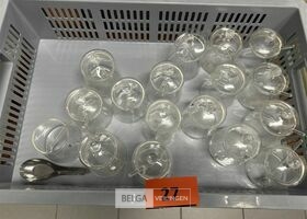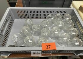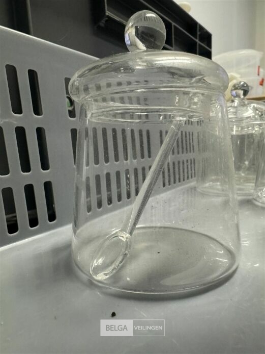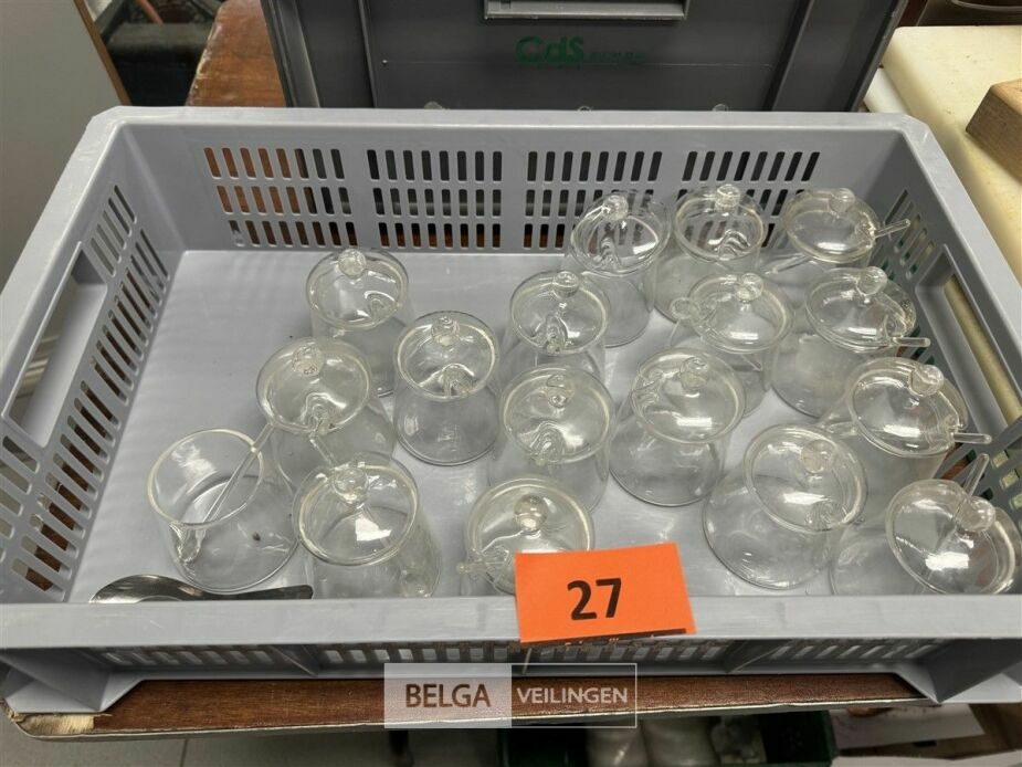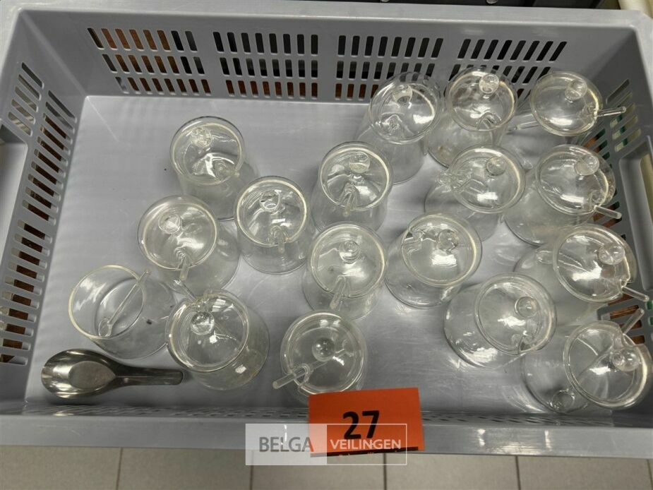 1 bak met glazen suikerpotjes ± 16 stuks - zonder bak