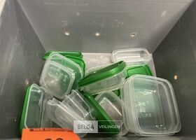 1 bak met plastiek bakjes met deksel diverse soorten ± 15 stuks - zonder bak