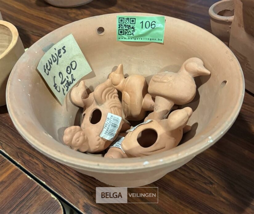 Belga Veilingen of één van haar partners is niet de eigenaar van de te veilen kavels en dus ook niet de verkoper. De veiling vindt plaats in opdracht van derden alsook de facturatie.