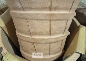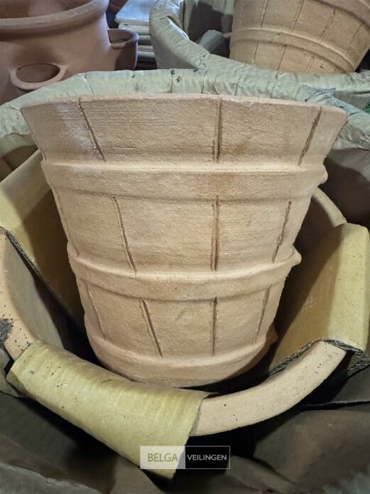 1 set ronde terracotta bloempotten met strepenmotief (3 stuks) - afm : hoogte : 16 cm, 22 cm en 29 cm - Ø : 22 cm, 29 cm en 39 cm