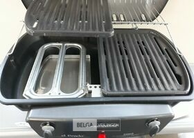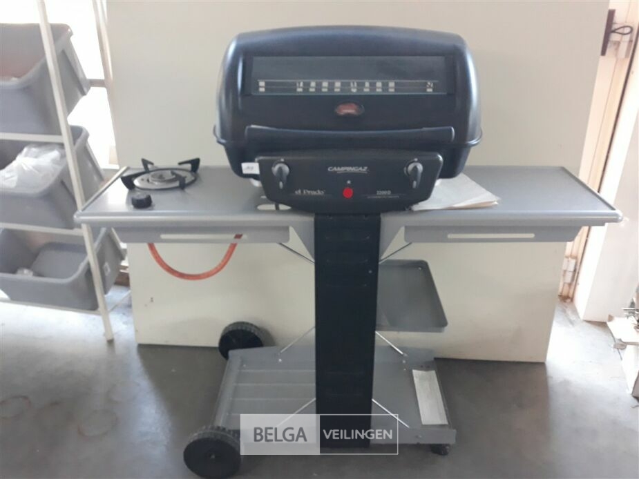 1 x BBQ op gas Campingaz met 2 branders en kookvuur type elprado op modern onderstel met wielen