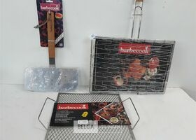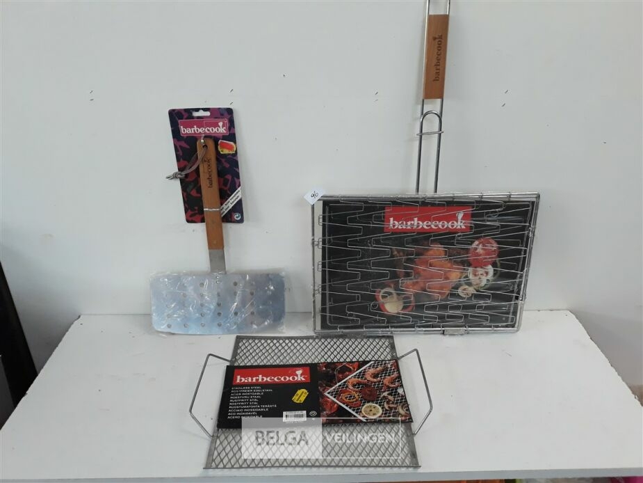 1 x BBQ toebehoren 1 x hamburgerspatel + 1 x rooster voor scampies-groenten 30x31 cm + 1 x grillrooster voor kip 30x40 cm