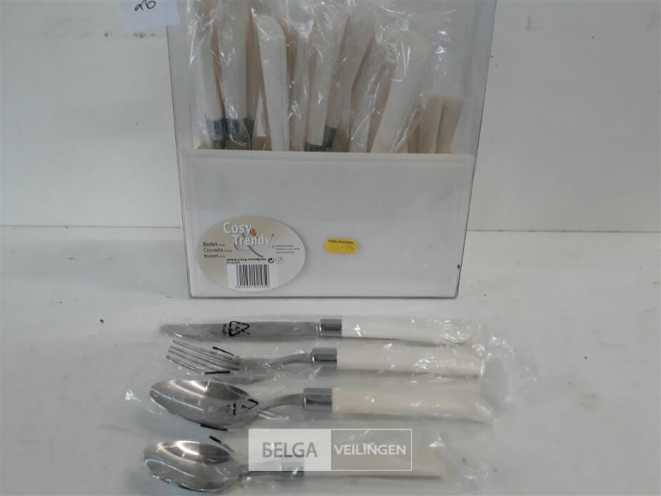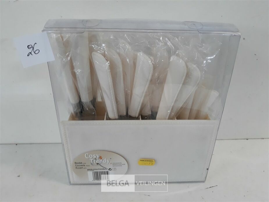 1 x Bestekset in opbergdoos Leder look 6 x vork-lepel-mes-koffielepel vaatwasbestendig