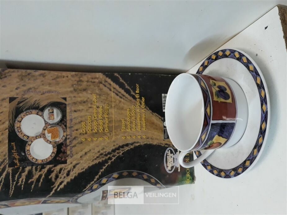 1 x Dinnerset rustiek fruit 4 x tas ondertas soepbord dessertbord 3 x groot bord