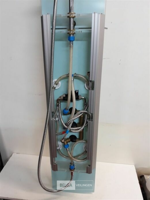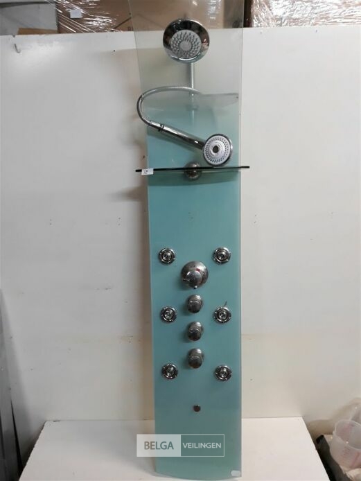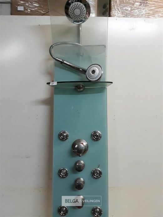 1 x Douchezuil uit veiligheidsglas met jets douchekop en regendouche met thermostaatkraan