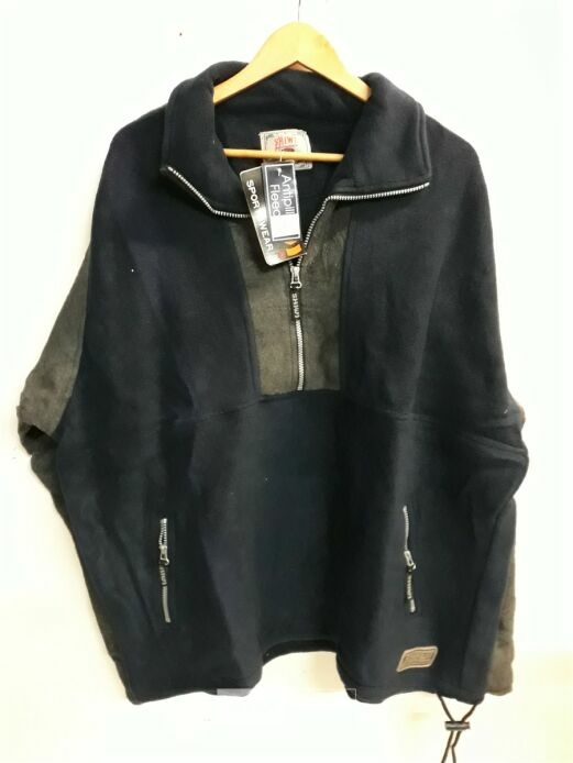 1 x Fleece trui met korte rits blauw/grijs XXL