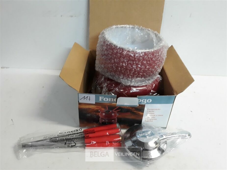 1 x Fondue set op gelbrander rood met vorkjes