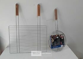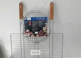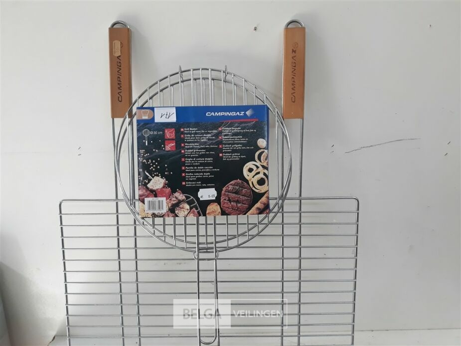 1 x Grillrooster 1 x rond 30 cm houten handvat + 1 x BBQ rooster 53x40 cm met 2 houten handvatten Campingaz