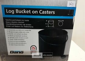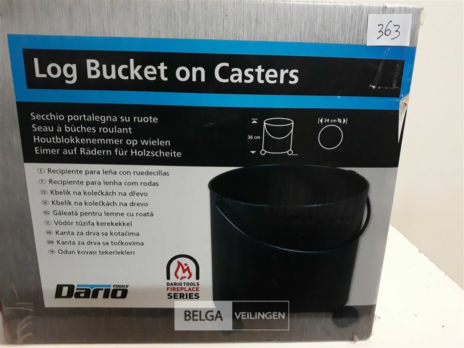 1 x Houtblokken emmer zwart op wielen H 36cm dia 34 cm