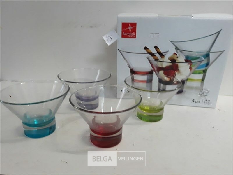 1 x Ijscoupe 37,5 cl gekleurde voet Bormioli 4 stuks