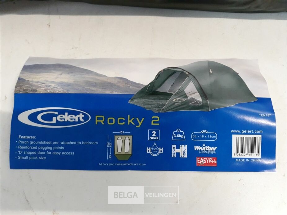 1 x Kampeertent 2 personen Gelert Rocky 2 155x205+55 cm H 120 cm in opbergzak 3,6 kg